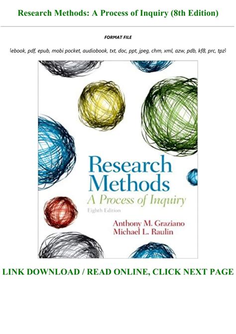 Download research methods a process of inquiry 8th edition Reader online is a convenient and frugal way to read research methods a process of inquiry 8th edition you love right from the comfort of your own home. Yes, there sites where you can get Reader "for free" but the ones listed below are clean from viruses and completely legal to use.